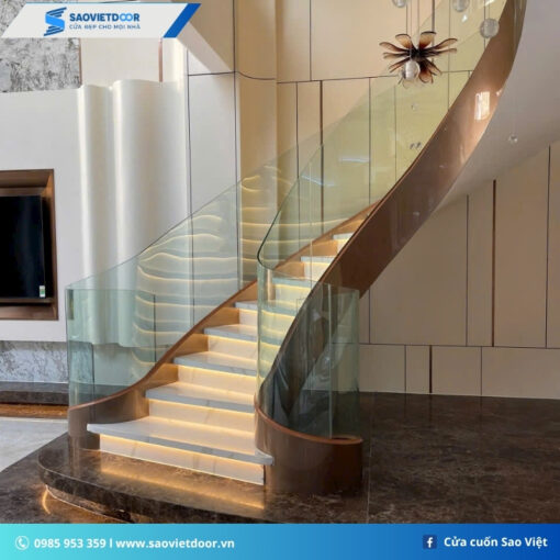 Các Mẫu Thiết Kế Cầu Thang Kính Cong Độc Đáo tại Saovietdoor