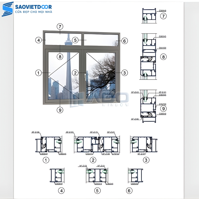 Cửa Sổ Mở Quay Nhôm Xingfa A65 |