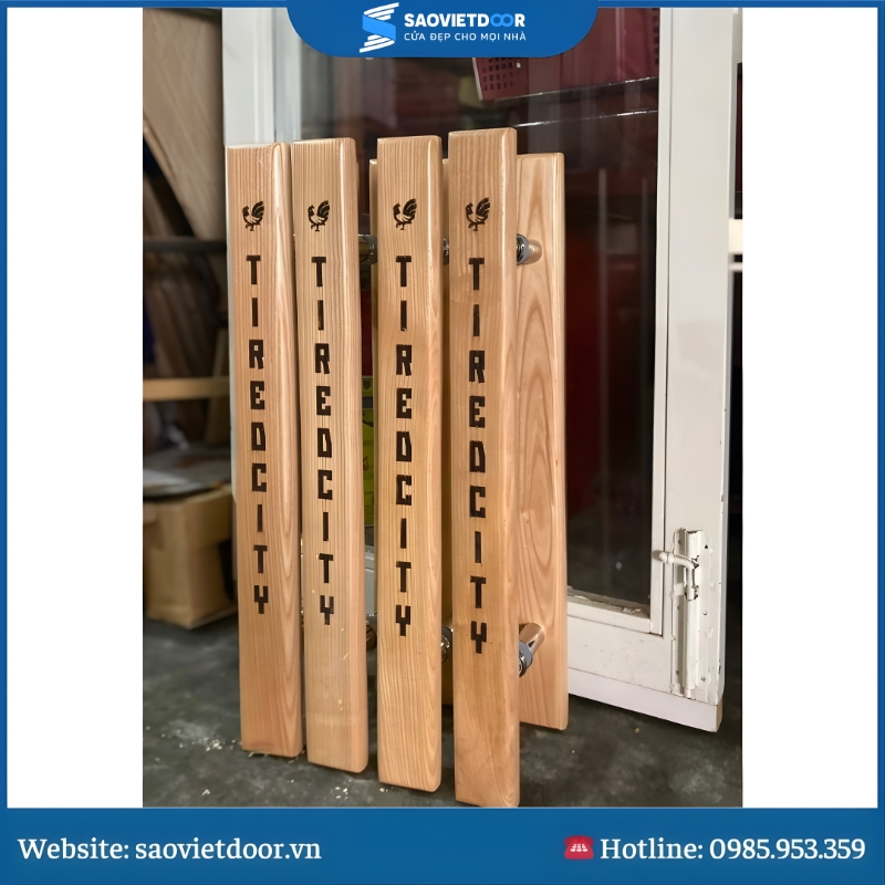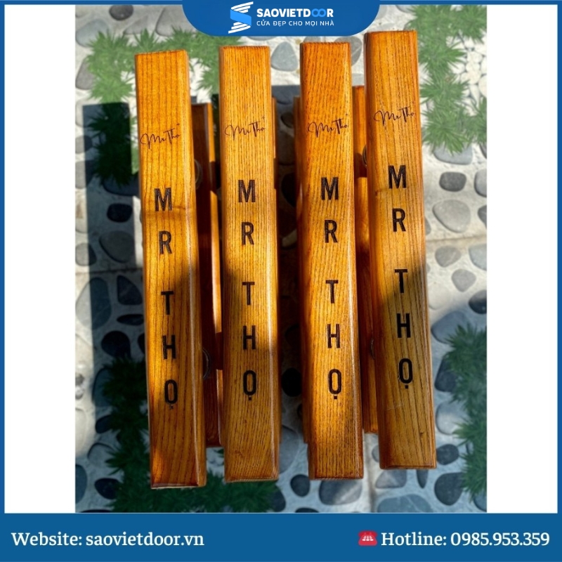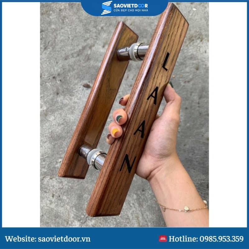 Đặc biệt, Saovietdoor cung cấp đa dạng các mẫu mã và kiểu dáng tay nắm gỗ khắc chữ, từ những thiết kế đơn giản, thanh lịch đến những mẫu có họa tiết phức tạp và sang trọng, để phù hợp với mọi phong cách trang trí nội thất.